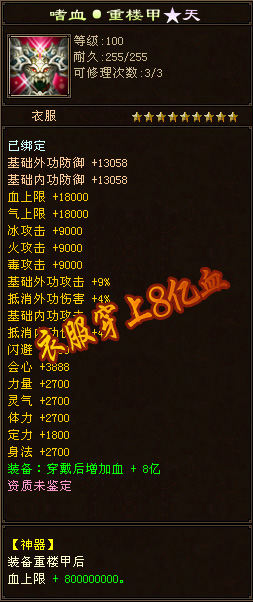 版本特色:所有顶级装备去洛阳领取2000万攻血防,不花钱也一样牛比。
